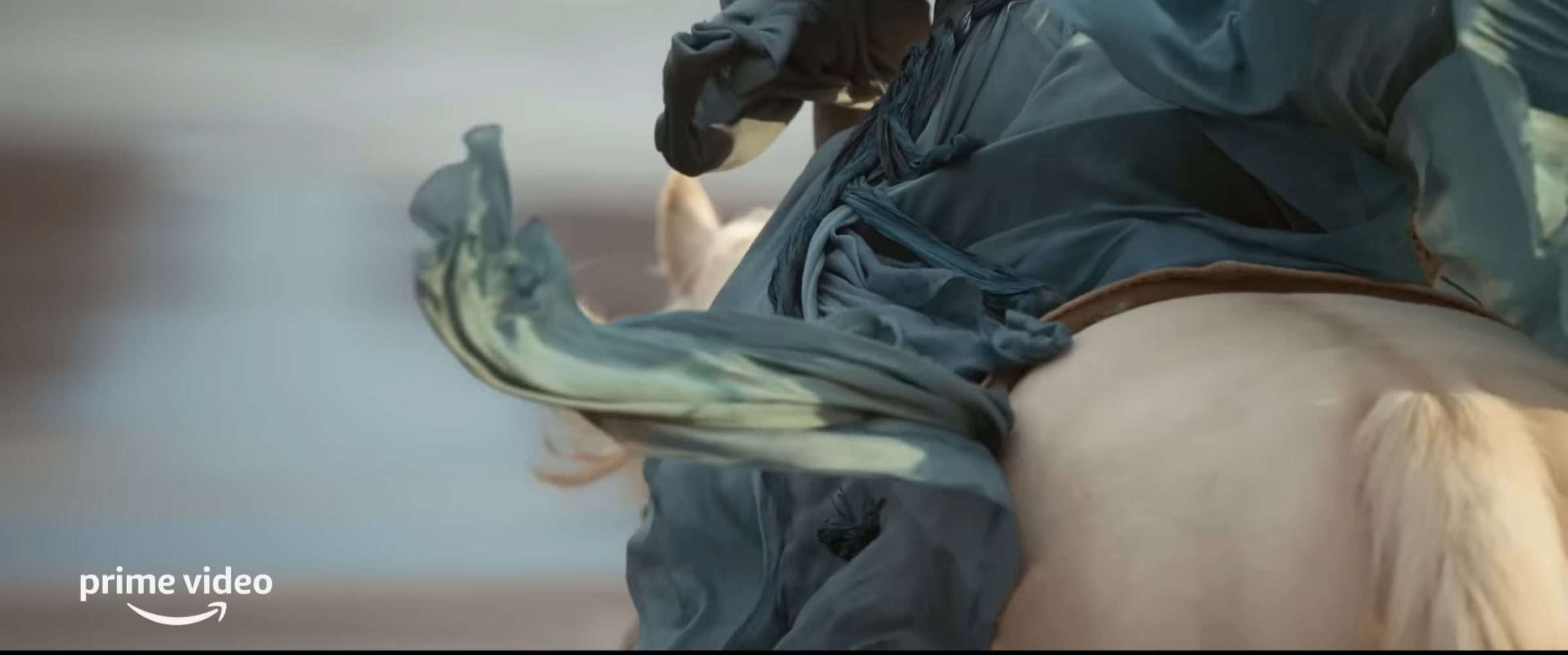 In this frame we see Galadriel riding together with Elendil on one of the beaches of Numenor, as also shown by the Entertainment Weekly photos. Thanks to our leaks we know that Aragorn’s ancestor and the elf will develop an important harmony, since the human, like Queen Miriel, is part of the “Faithful”.