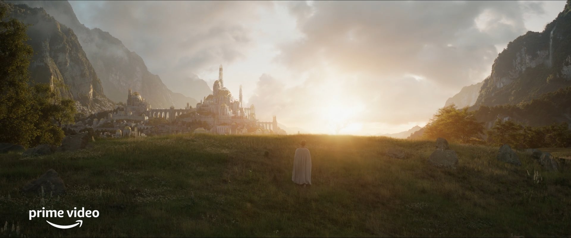 This image would seem to represent a splendid glimpse of Lindon. The color of the trees is very reminiscent of the frames seen in the first teaser trailer, where the coronation ceremony of some elves is represented. The architecture features the style and elegance typical of the eldar, in which the predominant color is a sparkling white.