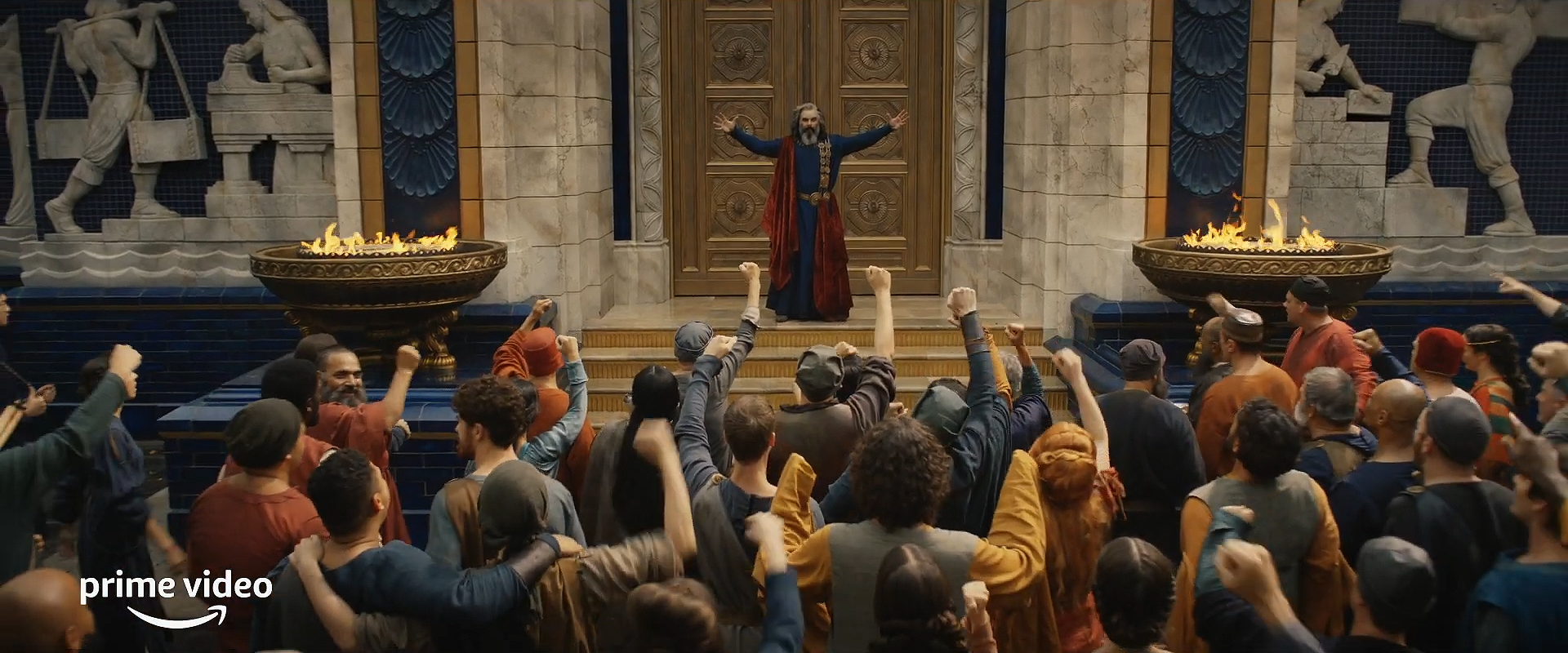 Here we are in the majestic island of Numenor, in one of the port cities (probably Andúnië or Romenna). The greatness of the kingdom is strongly perceived, and the architecture refers to ancient Greece not only for the style, but also for the details. The dominant colors are white and gold, but the presence of blue enriches the city with beauty, and reminds so much to the buildings of ancient Babylon. In the foreground we find the statue of Earendil the Blessed, in a frame that is practically opposite, for the direction of the camera, to that seen in the first teaser trailer.