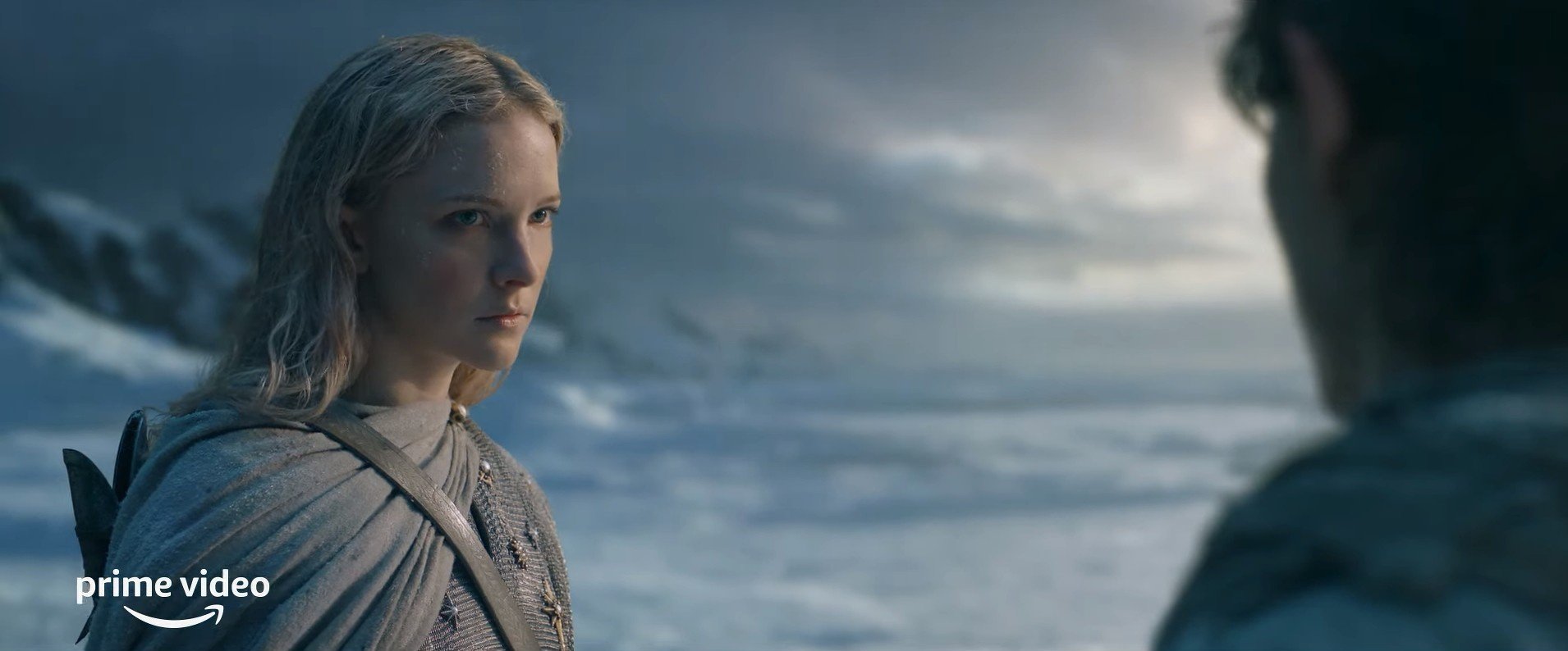Galadriel is also struggling with a rather challenging fight, in which we see her hitting the snow troll with two slashes of sword. The battle against the frightening creature promises to be brutal, and the clash will probably be extremely violent.