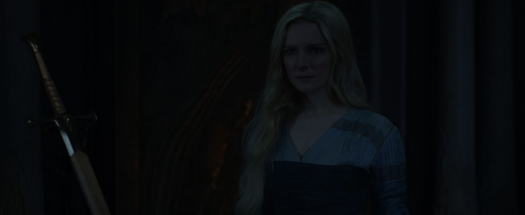 Importantly, these relics are most often presented as artifacts rather than instruments. They are housed, displayed, and protected, not wielded. Aranrúth is a sword, but Míriel wears it only as an adornment and never wields it in battle. This distinction reinforces the idea that the First Age is already history within the world of the show. Its great conflicts have passed, and its heroes are remembered rather than reenacted. Númenor’s relationship to these objects suggests a culture that defines itself through remembrance and inheritance, valuing preservation alongside achievement.