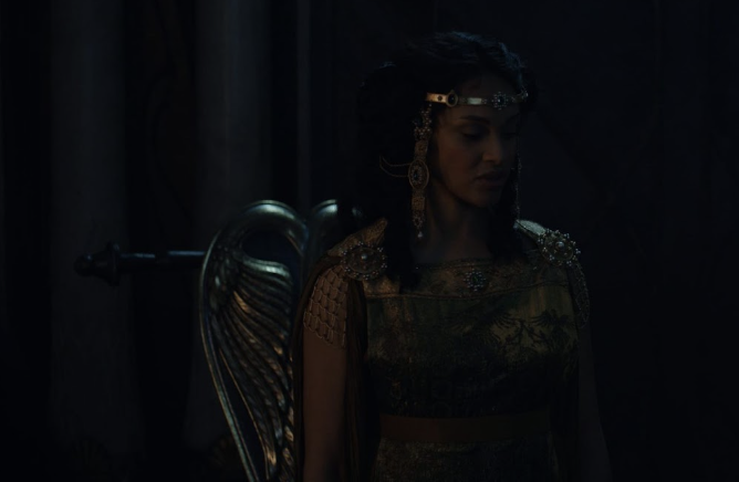 At this point in the series, Númenor’s identity is increasingly divided. The Faithful remain committed to preserving and honoring the past, while the Kingsmen present themselves as focused on Númenor’s future but are increasingly concerned with severing the island from its history. This rejection of memory is already visible onscreen, most clearly in Kemen’s incursion into a Faithful temple and the destruction he leaves in its wake.