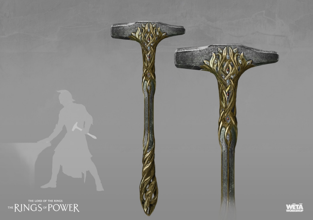 Finally, Fëanor’s hammer appears first as a preserved object, displayed in Season 1 as Celebrimbor speaks longingly about legacy. The hammer once belonged to his grandfather, who possibly used it to create the Silmarils, the three legendary jewels that shaped, for both good and ill, the First Age of Middle-earth. When Celebrimbor later takes up the hammer as a tool of creation to craft the Rings of Power, its legacy is extended into the Second Age. Like the Silmarils before them, the Rings of Power will go on to shape the history of Middle-earth for Ages to come.